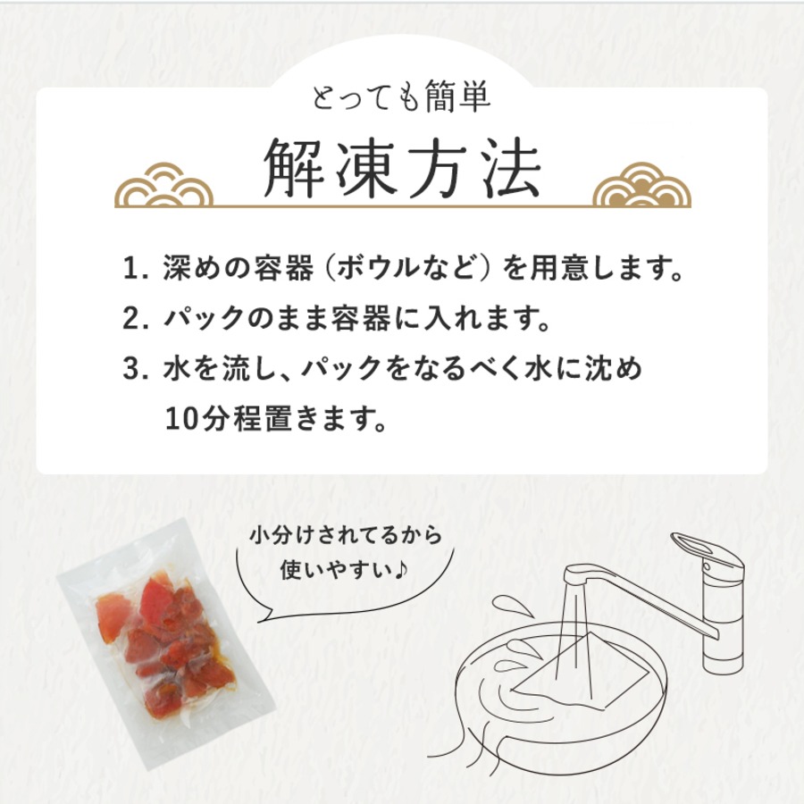 原材料:めばちまぐろ(太平洋)、醤油(大豆:遺伝子組み換えの混入を防ぐため分別)、砂糖、かつお節だし、発酵調味料